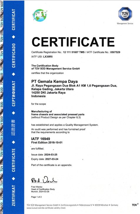 Berkantor pusat di Jakarta Utara, GKD berfokus pada produksi komponen otomotif seperti frame chassis dan press parts untuk kendaraan komersial. Sebagai bagian dari Grup IGP, GKD memiliki peran penting dalam mendukung industri otomotif di Indonesia. Dengan visi untuk menjadi produsen frame chassis dan press parts terpercaya, GKD berkomitmen untuk tumbuh sebagai perusahaan yang berdaya saing tinggi di tingkat global.