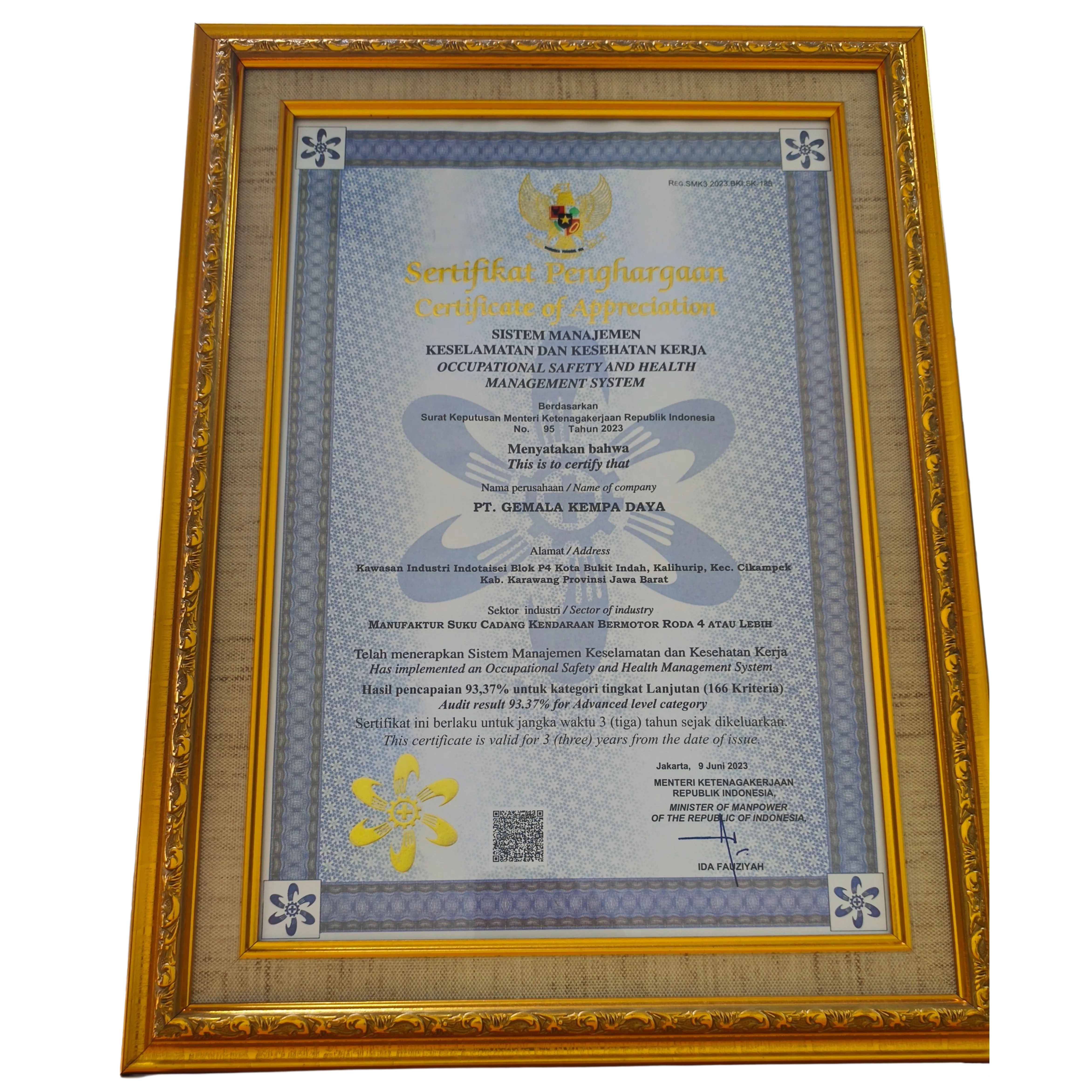 Mendapatkan pencapaian di industri seperti sertifikat dan penghargaan atas perusahaan adalah salah satu goals terbesar PT GKD.
