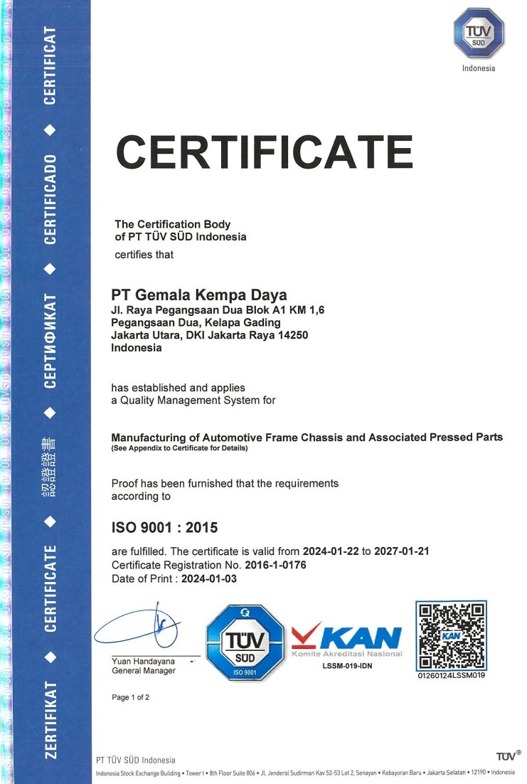 Mendapatkan pencapaian di industri seperti sertifikat dan penghargaan atas perusahaan adalah salah satu goals terbesar PT GKD.
